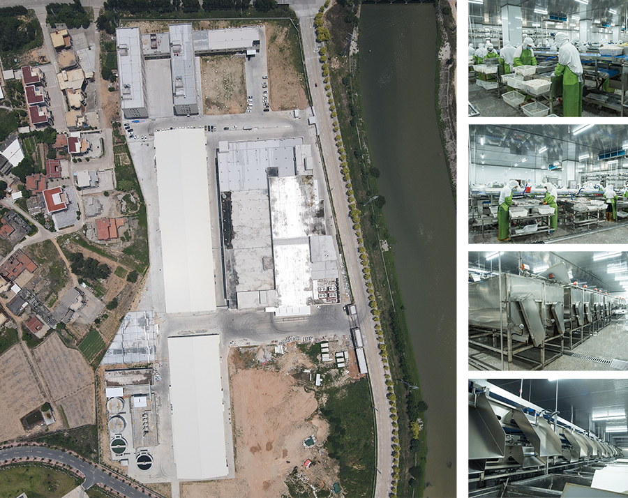 龙湖厂区冷冻水产品加工基地,干制水产品加工基地, 冷冻鱼糜加工基地,休闲食品加工基地,总占地约100,000左右平方米。